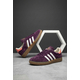 Кросівки Adidas Spezial у насиченому фіолетовому відтінку — це стильний акцент для тих, хто цінує індивідуальність. Верх із м’якої замші має виразну текстуру, а контрастні білі смужки підкреслюють класичний силует бренду.
