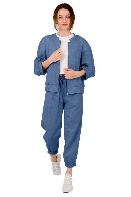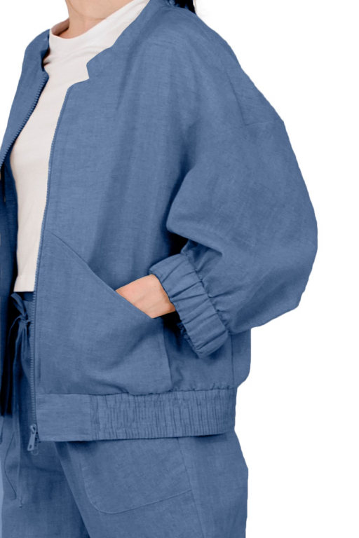 Бомбер на блискавці об'ємного силуету з накладними кишенями та спущеним рукавом з манжетом