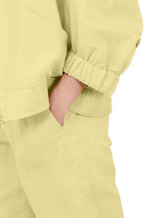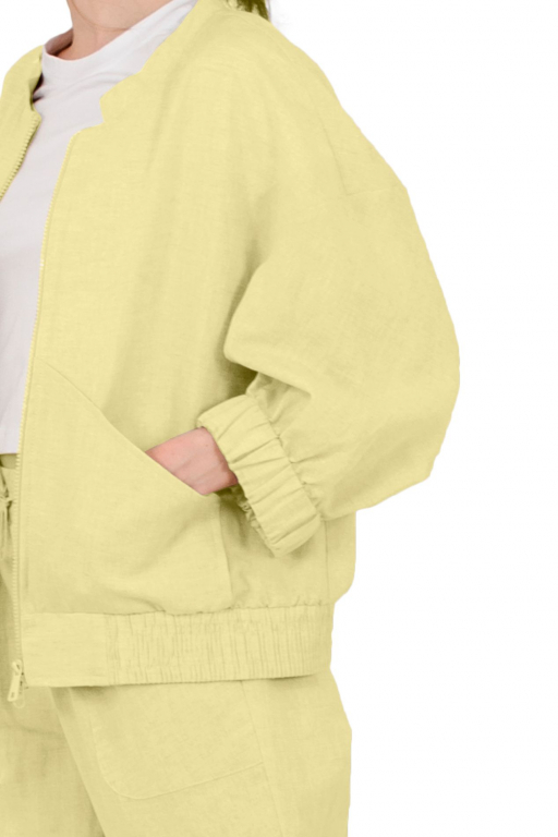 Бомбер на блискавці об'ємного силуету з накладними кишенями та спущеним рукавом з манжетом