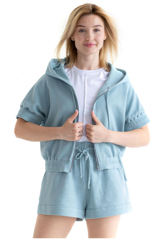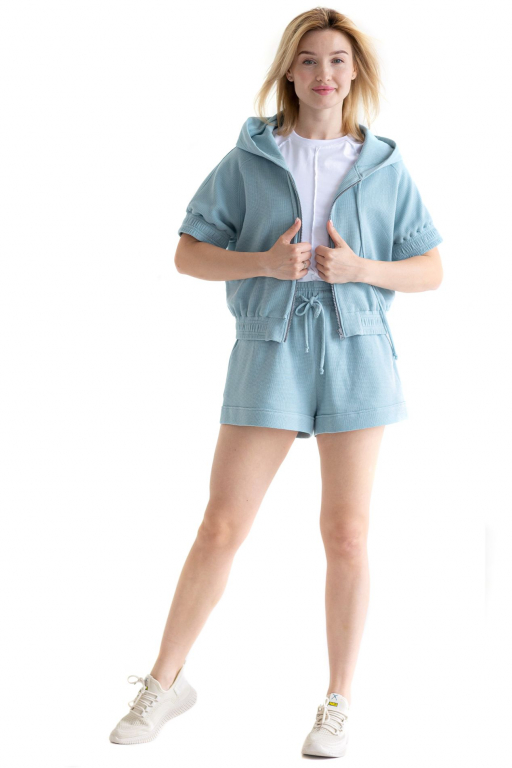 Бомбер на блискавці укорочений з коротким рукавом та шорти з декоративним манжетом зі шнурком у поясі