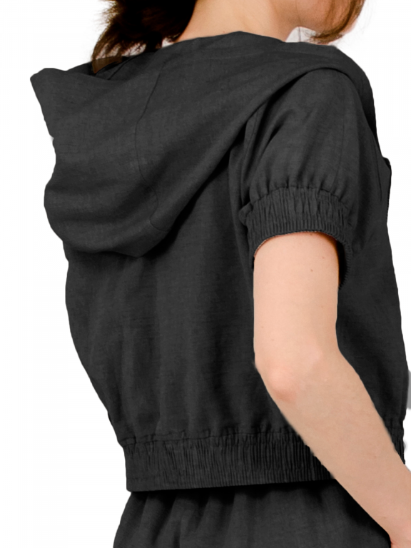 Бомбер на блискавці вкорочений з коротким рукавом реглан та капюшоном