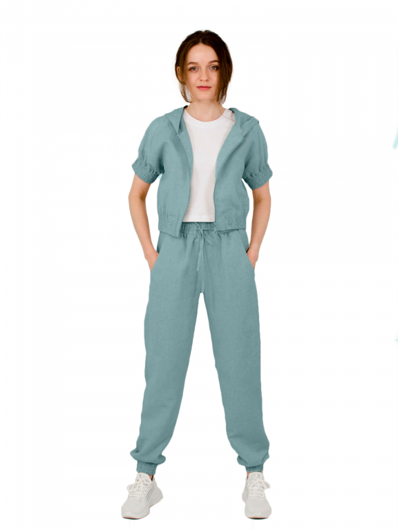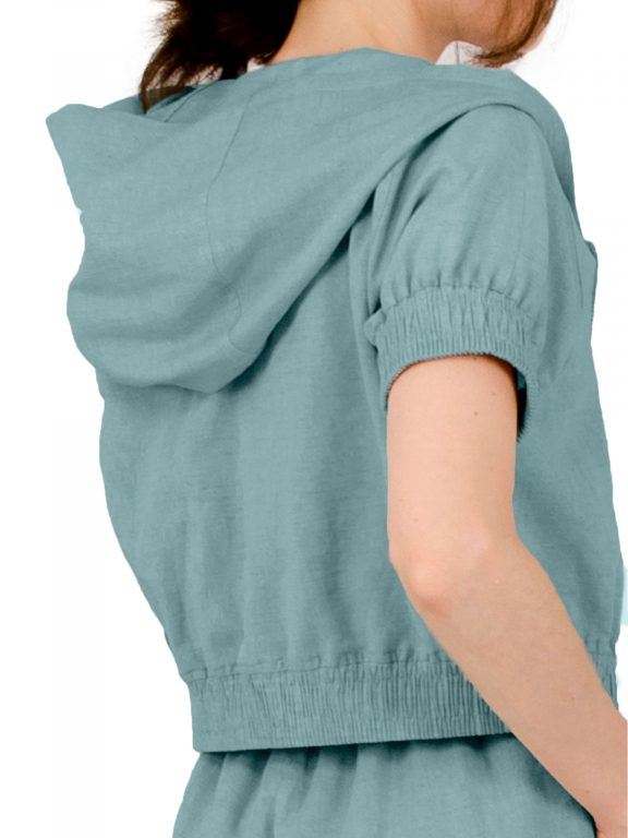 Бомбер на блискавці вкорочений з коротким рукавом реглан та капюшоном