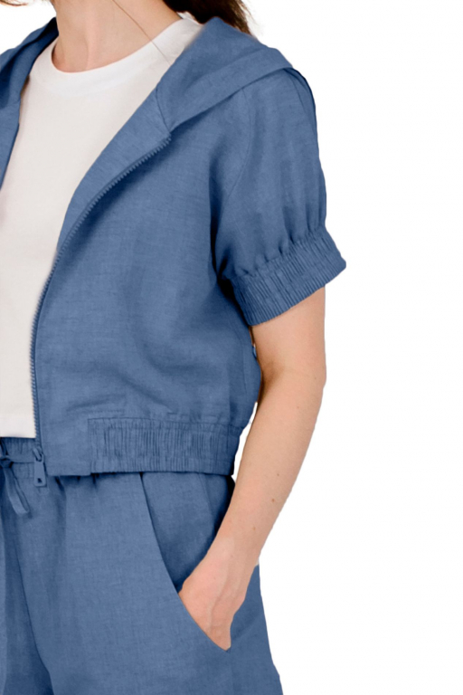 Бомбер на блискавці вкорочений з коротким рукавом реглан та капюшоном