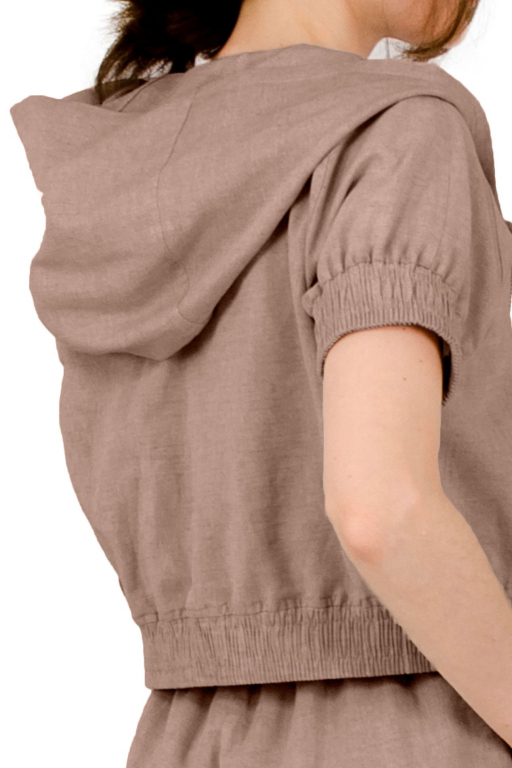 Бомбер на блискавці вкорочений з коротким рукавом реглан та капюшоном