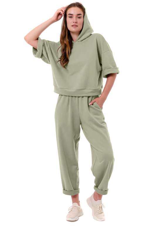 Худі вкорочене з капюшоном і коротким рукавом та штани банани вільного сілуєту