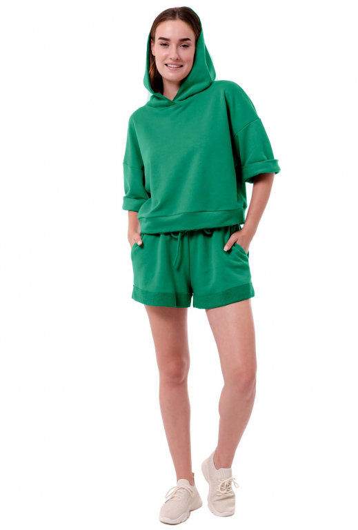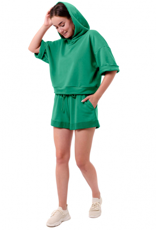 Худі вкорочене з капюшоном з коротким рукавом та шорти з декоративним підворотом внизу