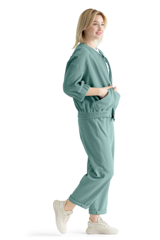Кофта на блискавці вільного силуету, укорочений об'ємний рукав та накладні кишені