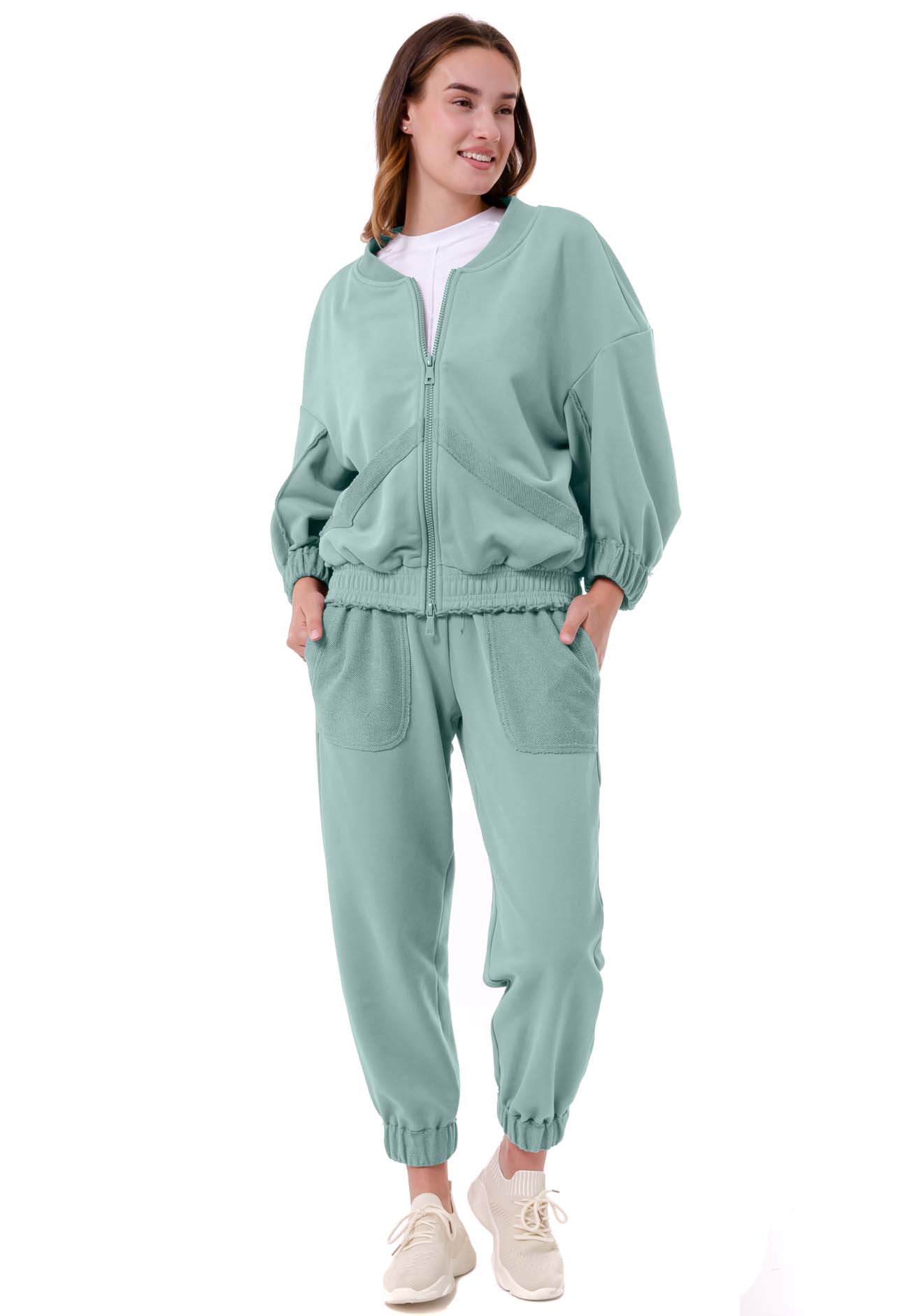 Кофта на блискавці вільного силуету з накладними кишенями та штани з накладними кишенями