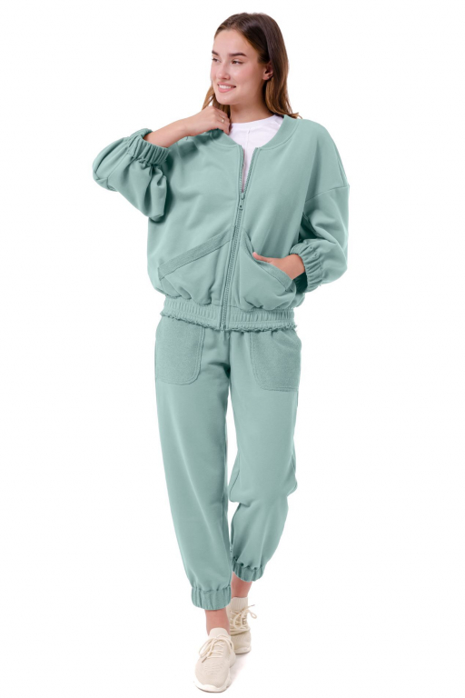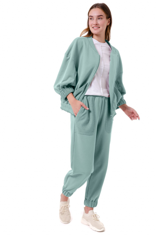 Кофта на блискавці вільного силуету з накладними кишенями та відкритими швами