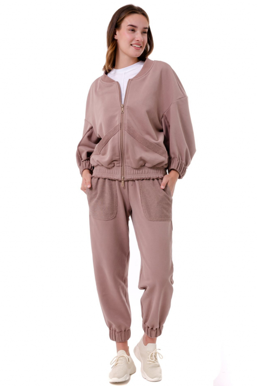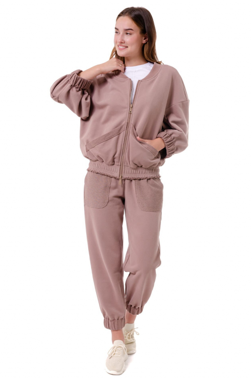 Кофта на блискавці вільного силуету з накладними кишенями та відкритими швами