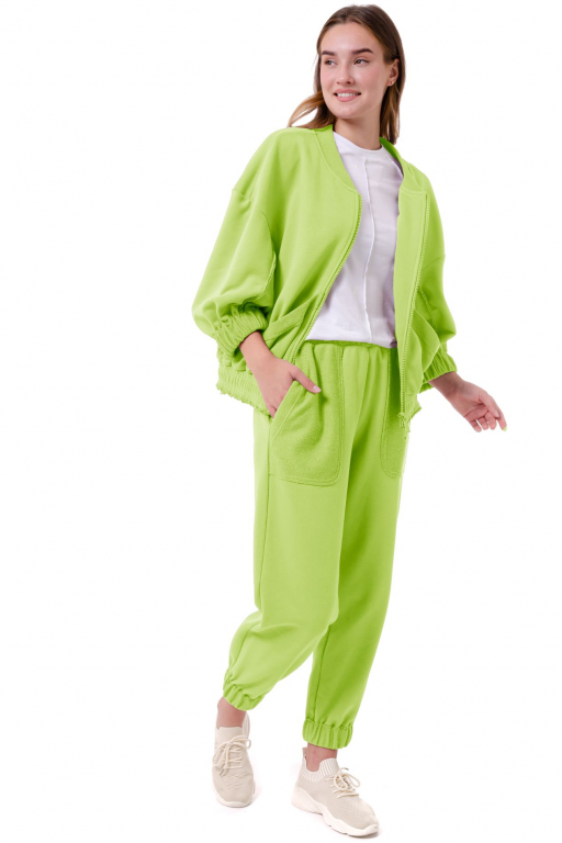 Кофта на блискавці вільного силуету з накладними кишенями та відкритими швами
