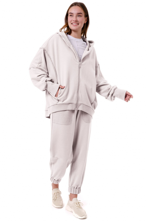 Кофта на блискавці з капюшоном об'ємного силуету із відкритими швами