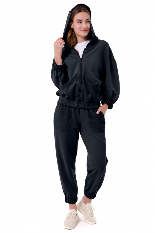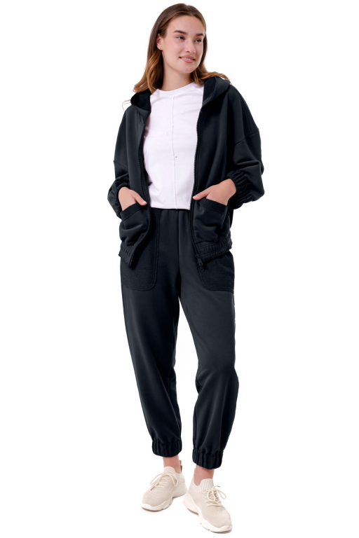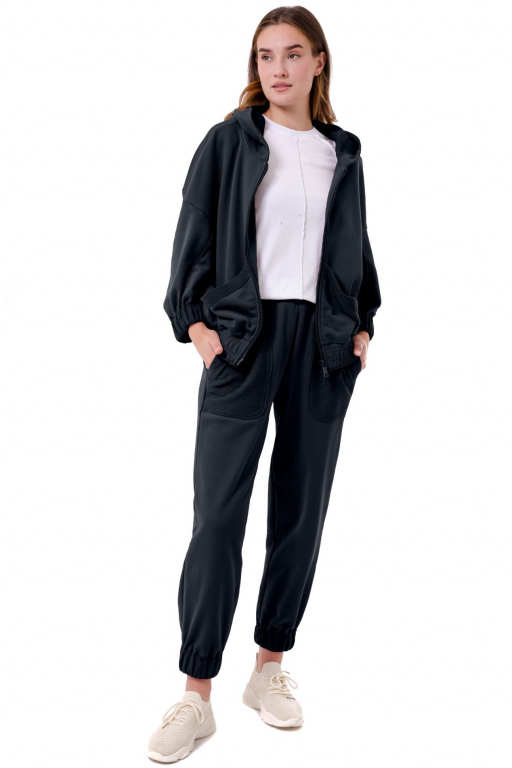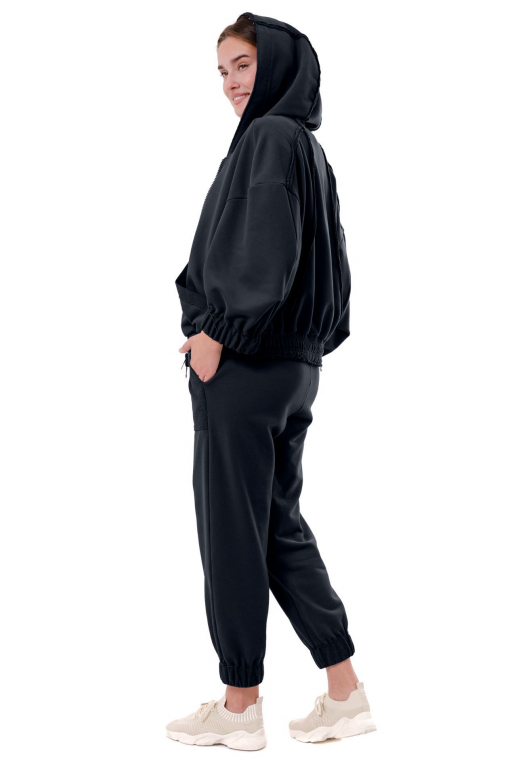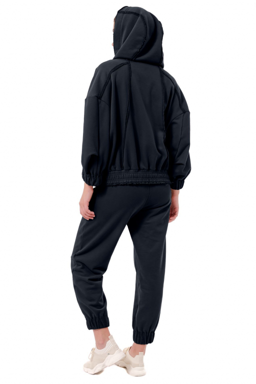 Кофта на блискавці з капюшоном вільного силуету з накладними кишенями та відкритими швами