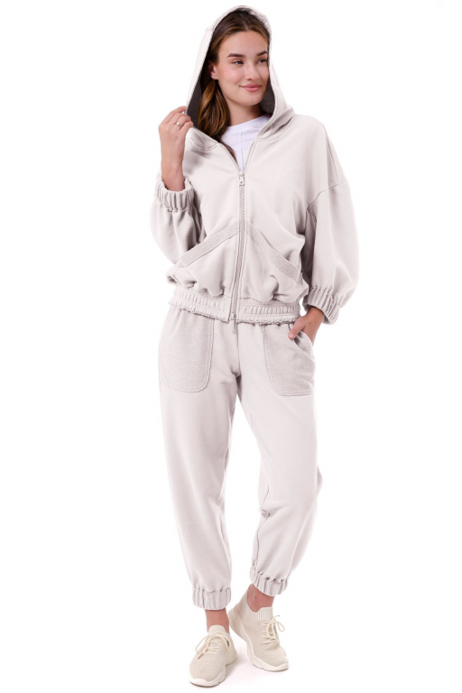 Кофта на блискавці з капюшоном вільного силуету з накладними кишенями та відкритими швами
