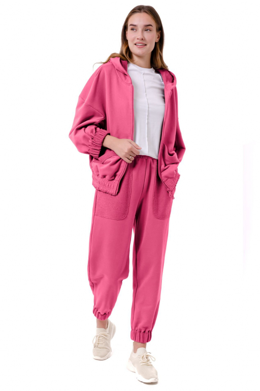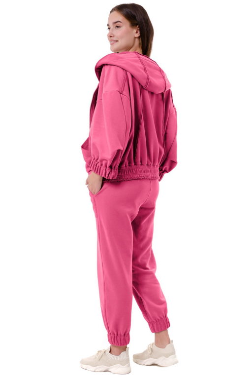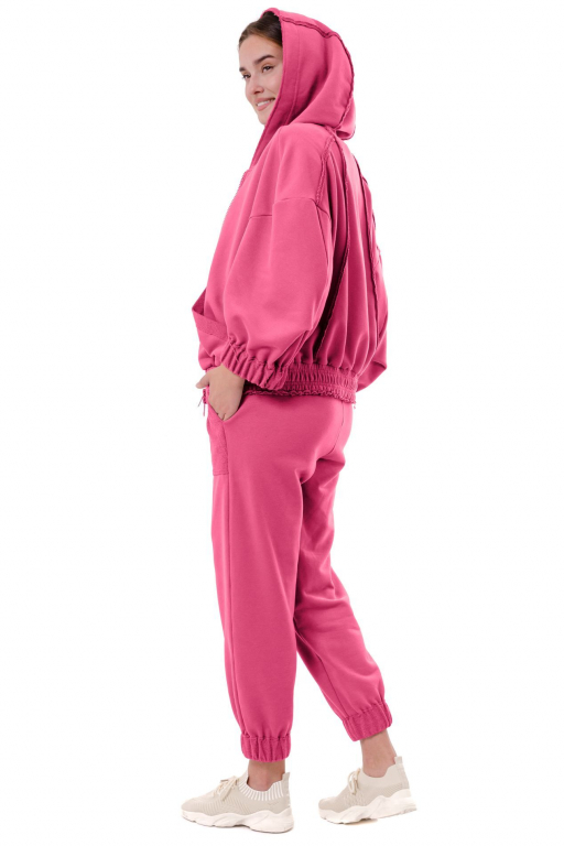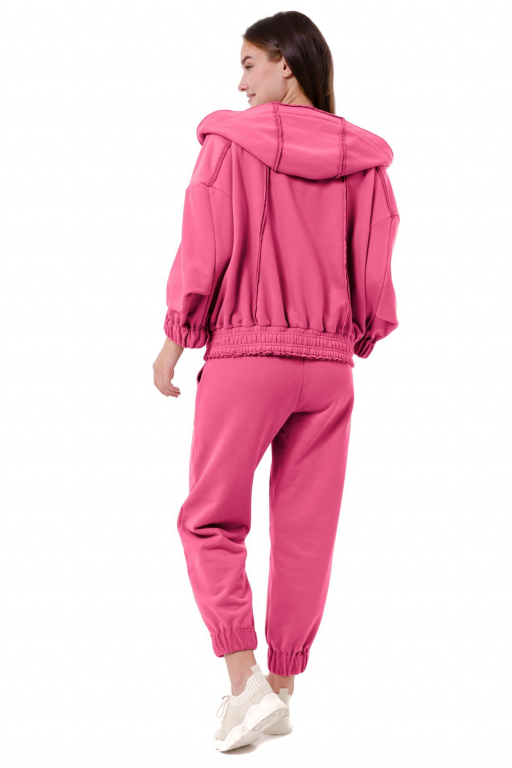 Кофта на блискавці з капюшоном вільного силуету з накладними кишенями та відкритими швами