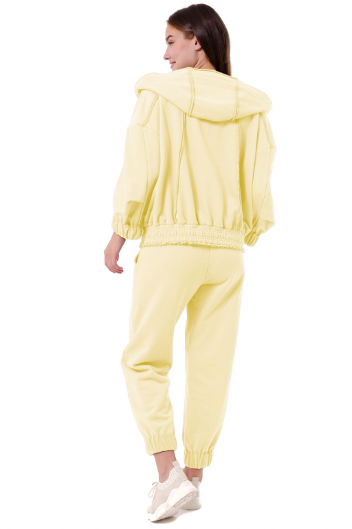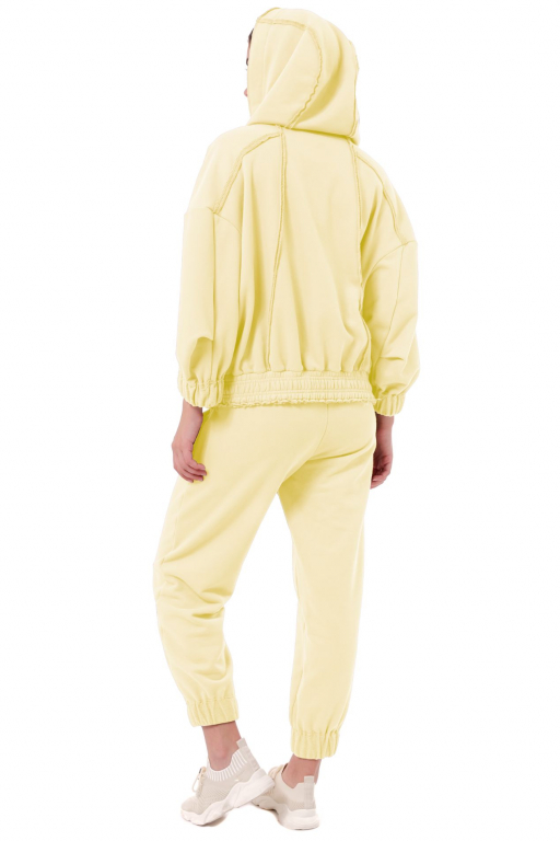 Кофта на блискавці з капюшоном вільного силуету з накладними кишенями та відкритими швами