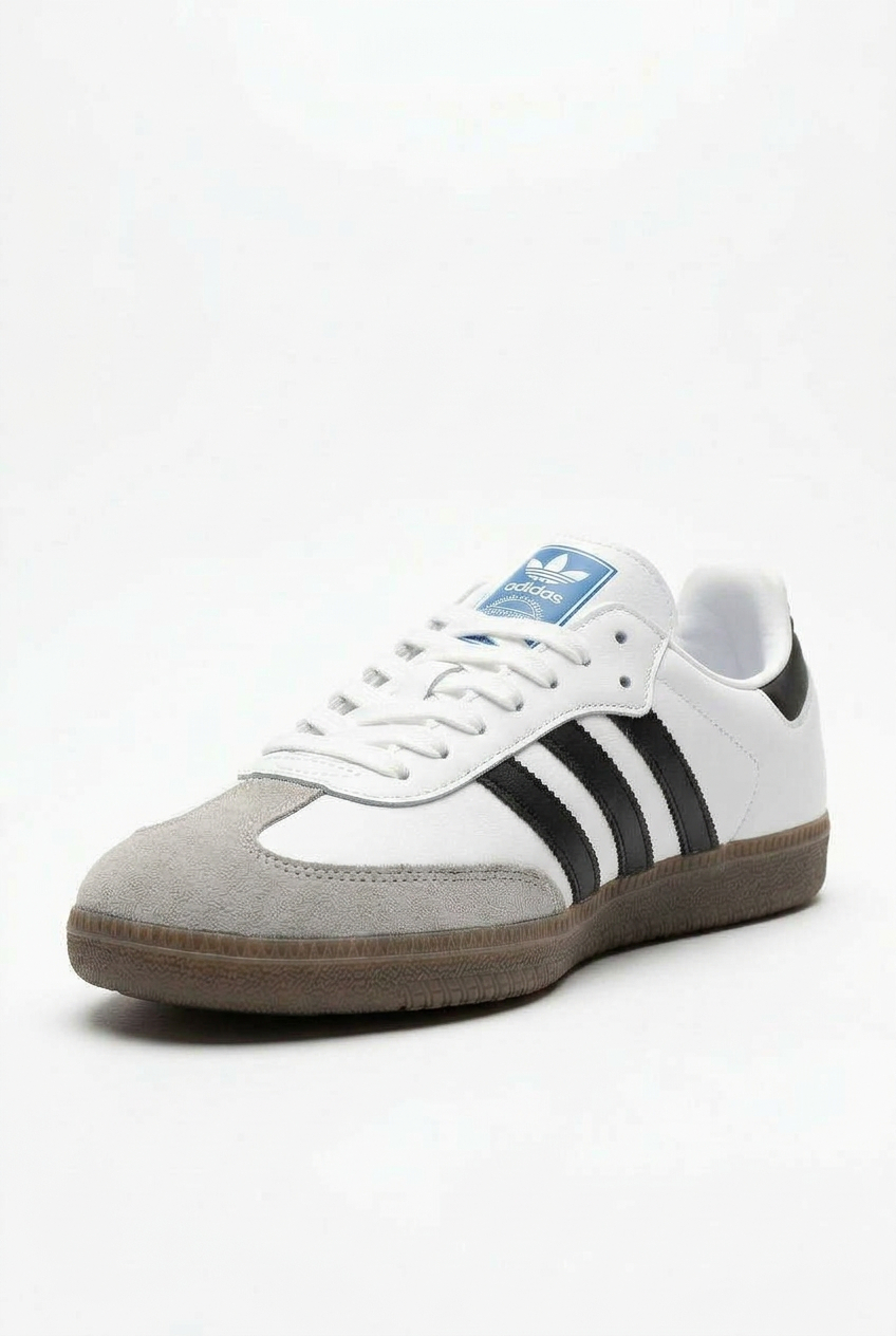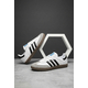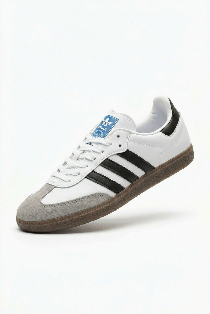 Кросівки Adidas Samba — це ікона стилю, яка поєднує спортивну спадщину та сучасну універсальність. Білий верх створює чистий і акуратний вигляд, чорні смужки додають контрасту, а замшеві вставки на носку підкреслюють характерний дизайн моделі. Гумова підошва з теплим відтінком надає кросівкам ретро-настрою та завершеного вигляду.