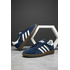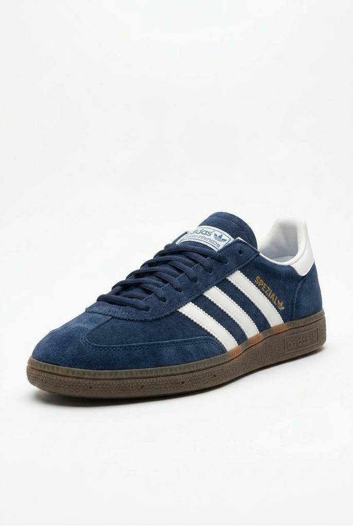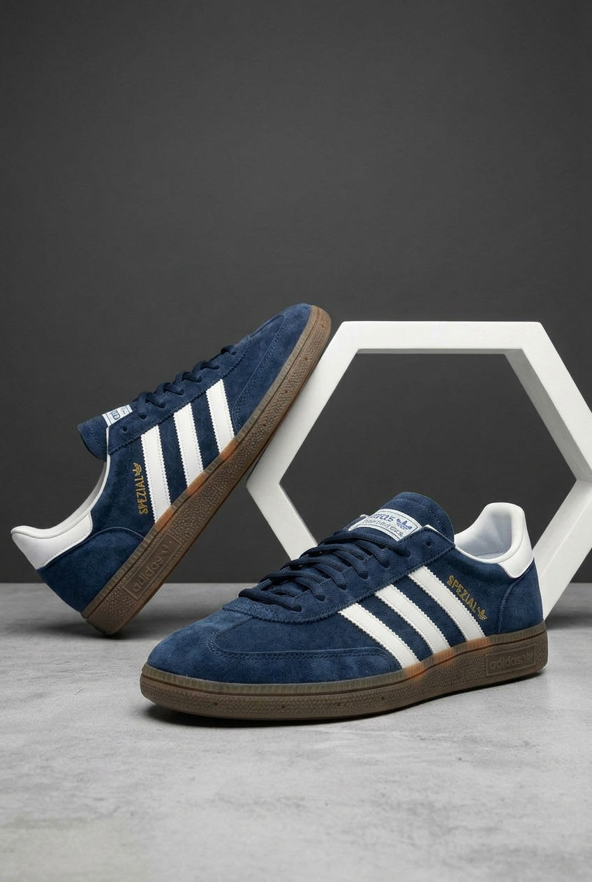 Кросівки Adidas Spezial — це поєднання класичного дизайну та благородного кольору. Насичений синій замшевий верх виглядає стримано й елегантно, а білі смужки додають контрасту та підкреслюють культовий силует моделі. Золотий напис Spezial надає витонченого акценту та завершує образ.