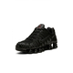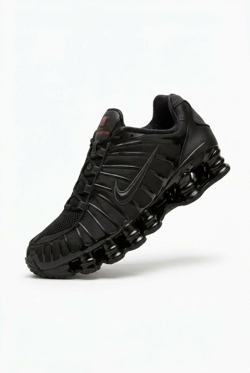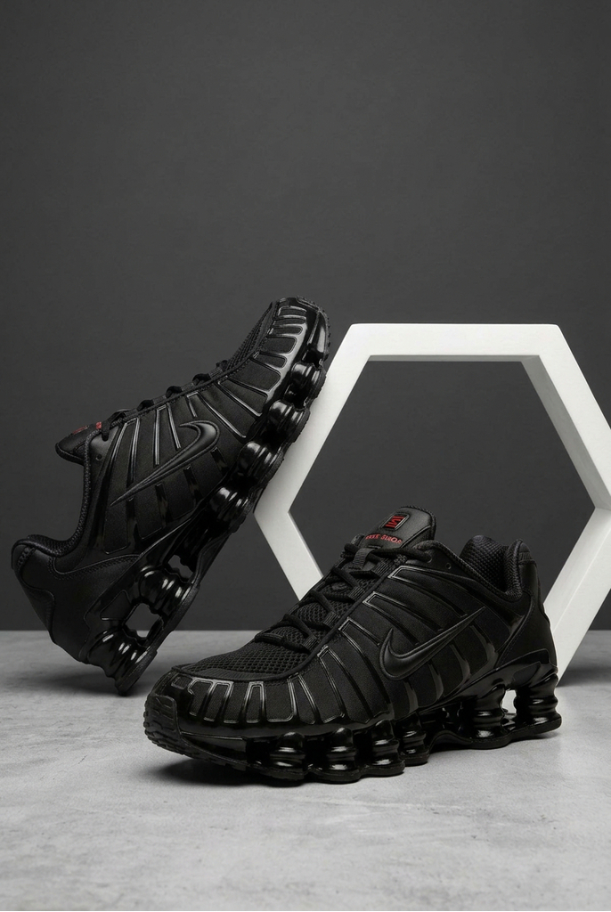 Головна особливість — фірмова система амортизації Shox, яка поглинає навантаження під час руху та створює ефект пружності. Завдяки монохромному чорному кольору кросівки виглядають стильно й універсально, ідеально підходячи як для активного способу життя, так і для повсякденних образів.