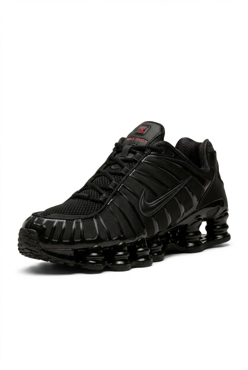 Nike Shox у повністю чорному виконанні — це поєднання технологічного дизайну та агресивного стилю. Верх із дихаючого текстилю та міцних синтетичних вставок забезпечує комфорт і надійну фіксацію стопи, а рельєфні елементи додають моделі виразності.