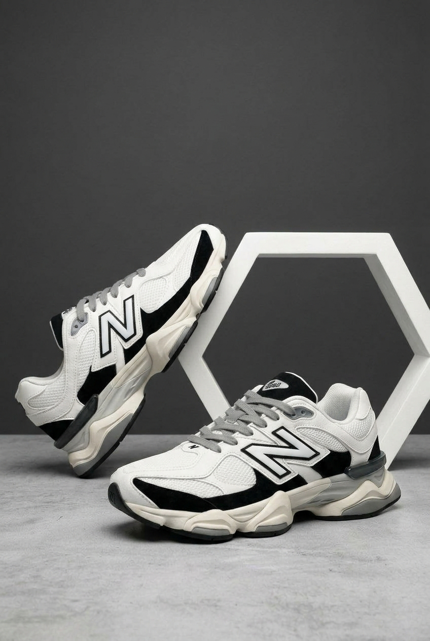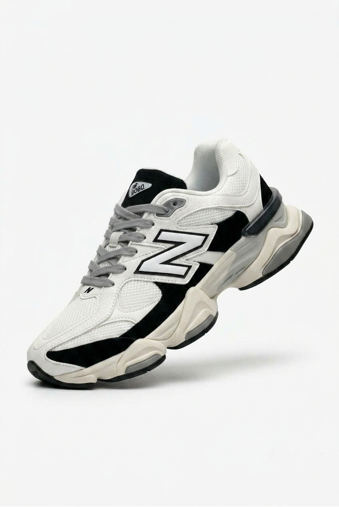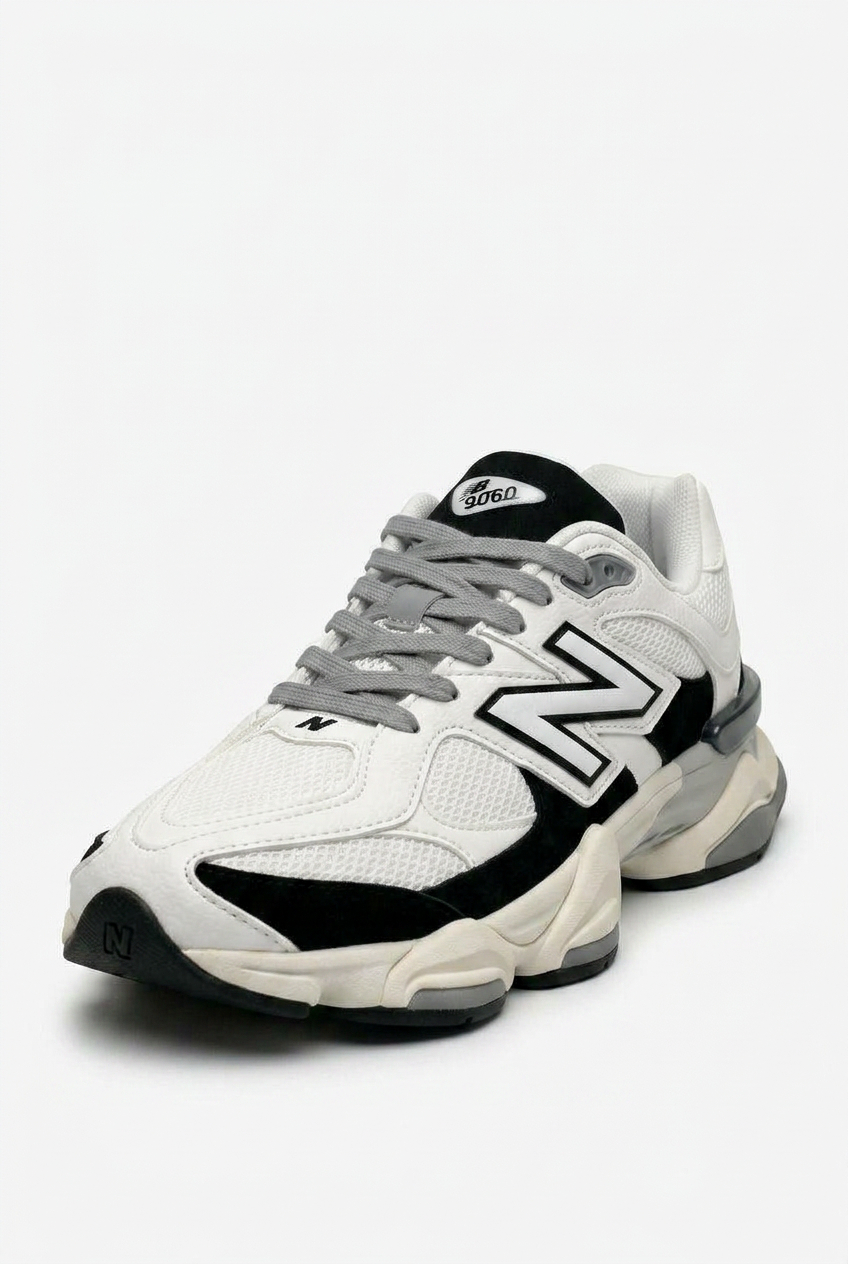 Кросівки New Balance 9060 у чорно-білій гамі — це сучасний силует із яскравим характером та натхненням ретро-естетикою. Поєднання сітчастого текстилю та замшевих вставок забезпечує комфорт, вентиляцію та стильний вигляд.