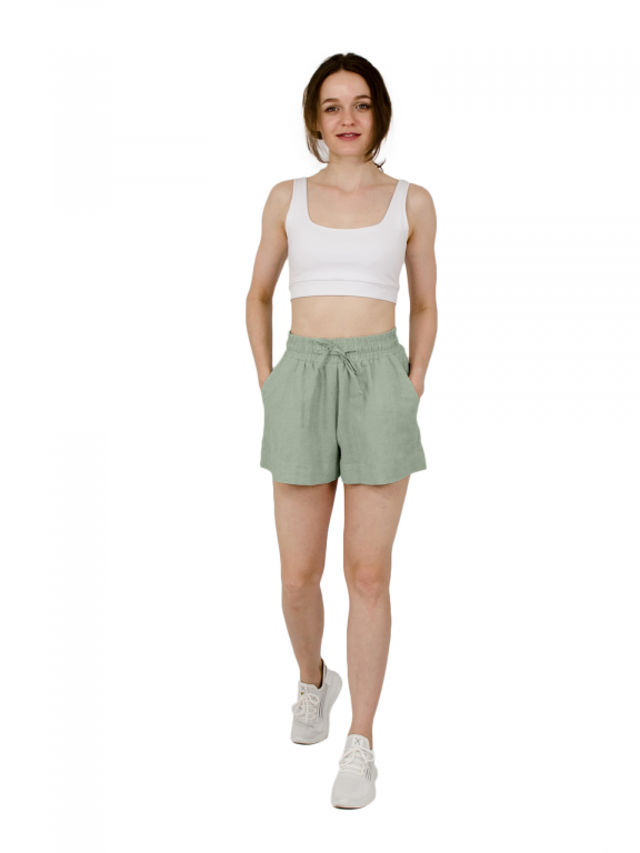 Шорти короткі вільного сілуету з широким підворотом та шнурком у поясі