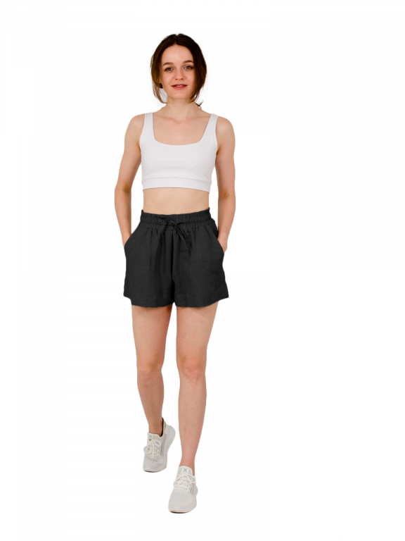 Шорти укороченні вільного силуету з широким підворотом та шнурком у поясі
