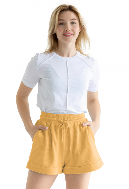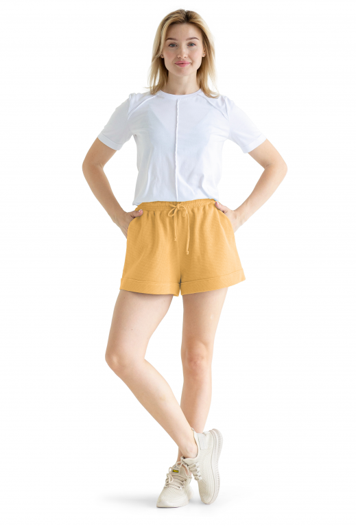 Шорти вкорочені з широким підворотом та шнурком у поясі