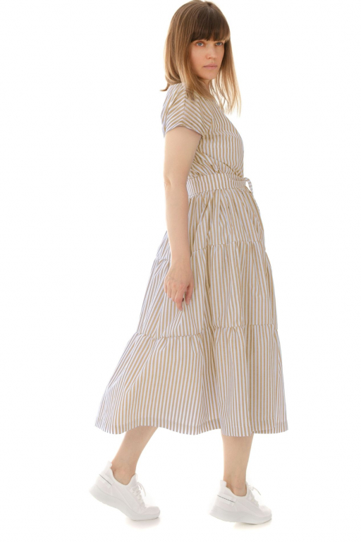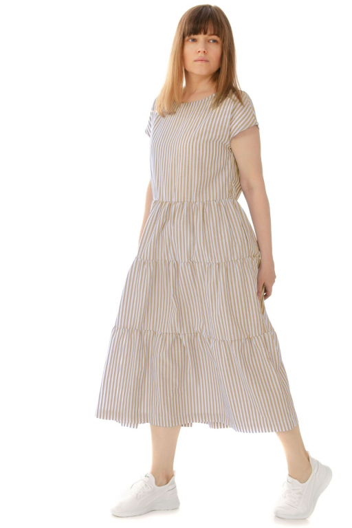 Сукня довга з трьома ярусами воланів та боковими кишенями з поясом
