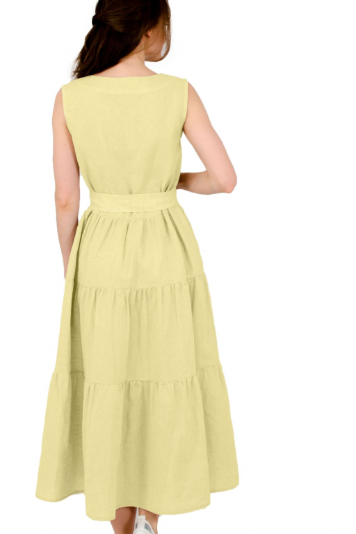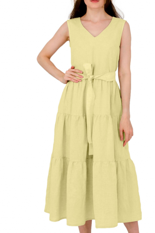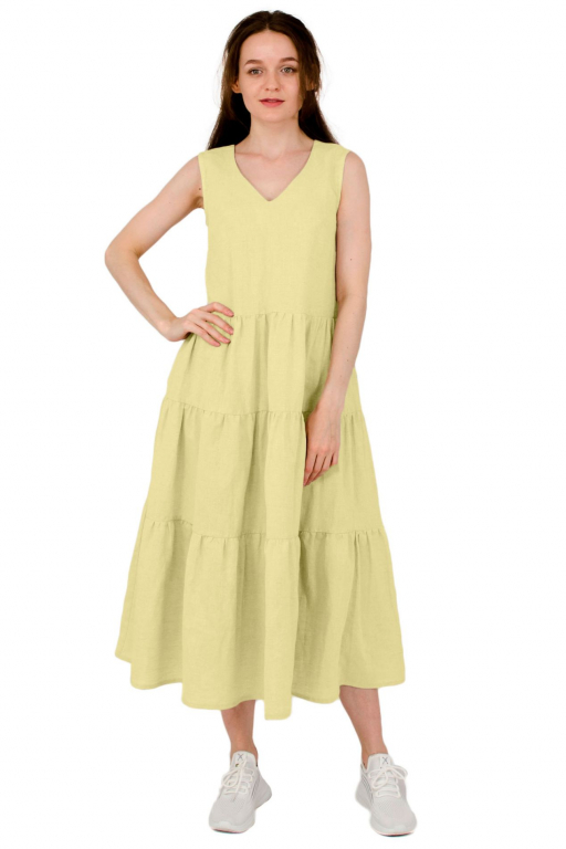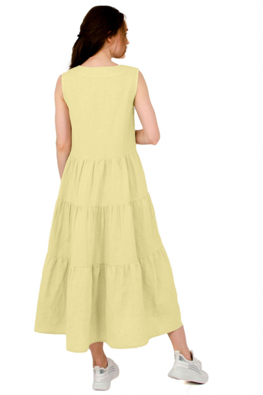 Сукня довга з трьома ярусами воланів та боковими кишенями з поясом