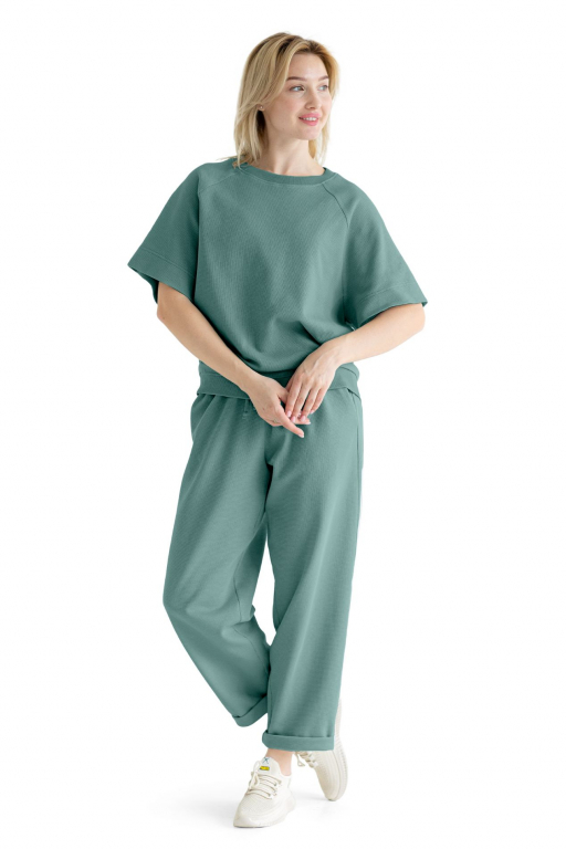 Світшот з коротким рукавом реглан та штани банани зі шнурком у поясі