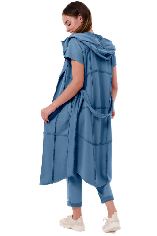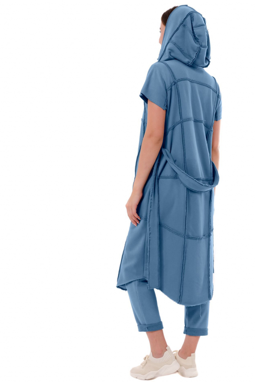 Тренч довгий з коротким рукавом та двома кишенями з відкритими швами