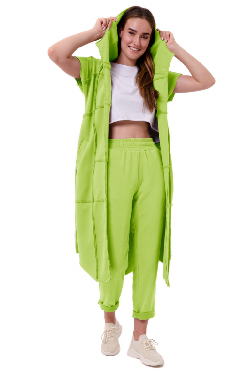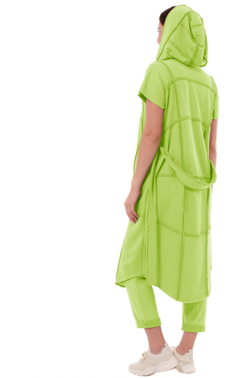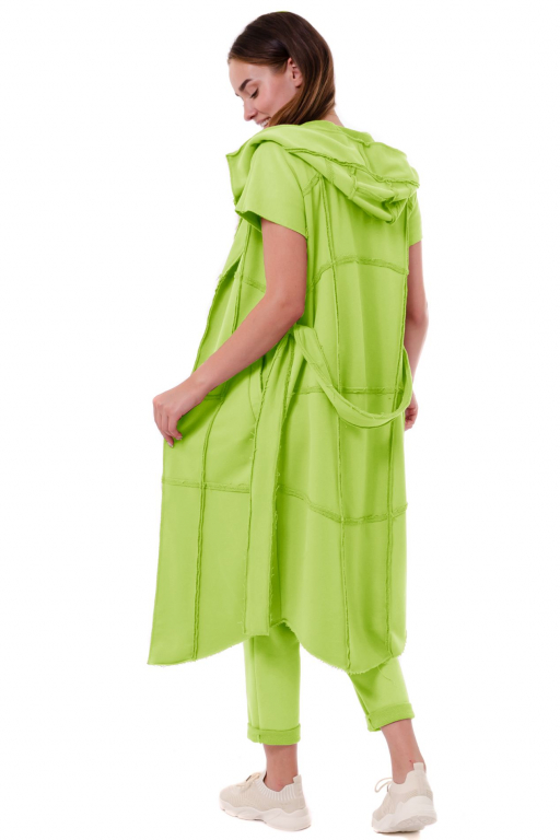Тренч довгий з коротким рукавом та двома кишенями з відкритими швами