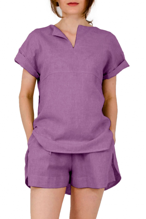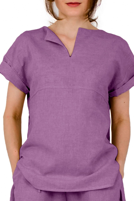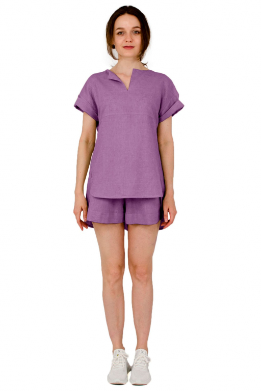 Туніка з коротким рукавом та подовженою спиною зі складками